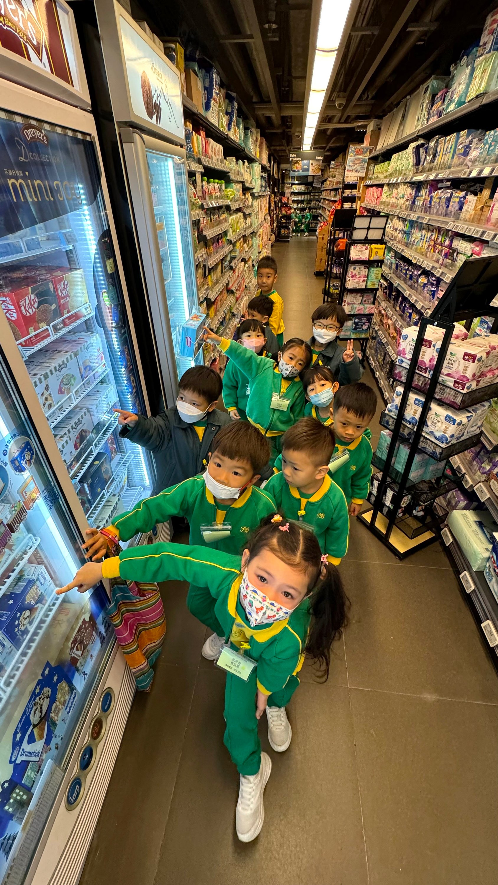 お弁当箱の中の秘密」というテーマにちなんで、2024年1月8日、ローワー・クラスの子どもたちと先生たちは、ハッピー・バレーにあるFUSIONスーパーマーケットに見学に行った。子どもたちは先生と一緒に購入する食品を計画し、スーパーマーケットに入り、棚に並んでいる商品を注意深く見て、スーパーマーケットに並んでいる食品の種類、並べ方、値段、栄養表示について学びました。また、子どもたちと一緒に便利なフルーツを買うための緑の袋を持参し、学校に戻ってフルーツ・アセンブリーを行い、食品を買うときの注意点や買い物の手順を学んだ。