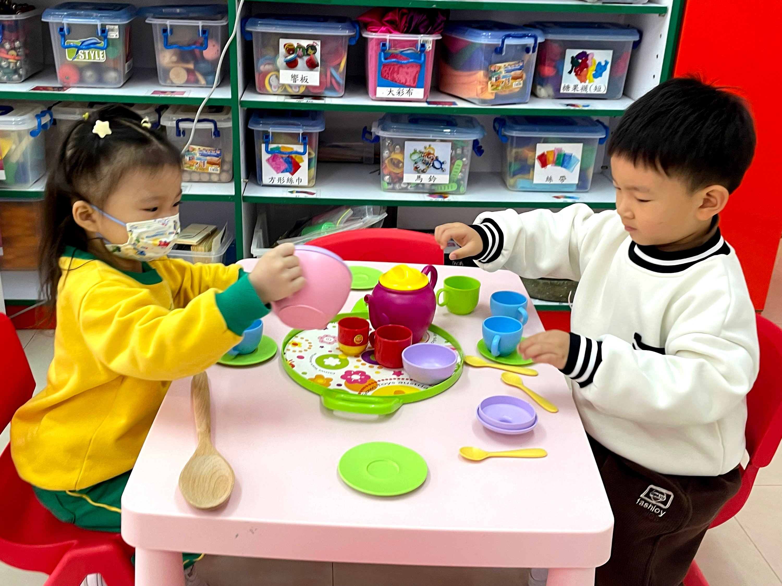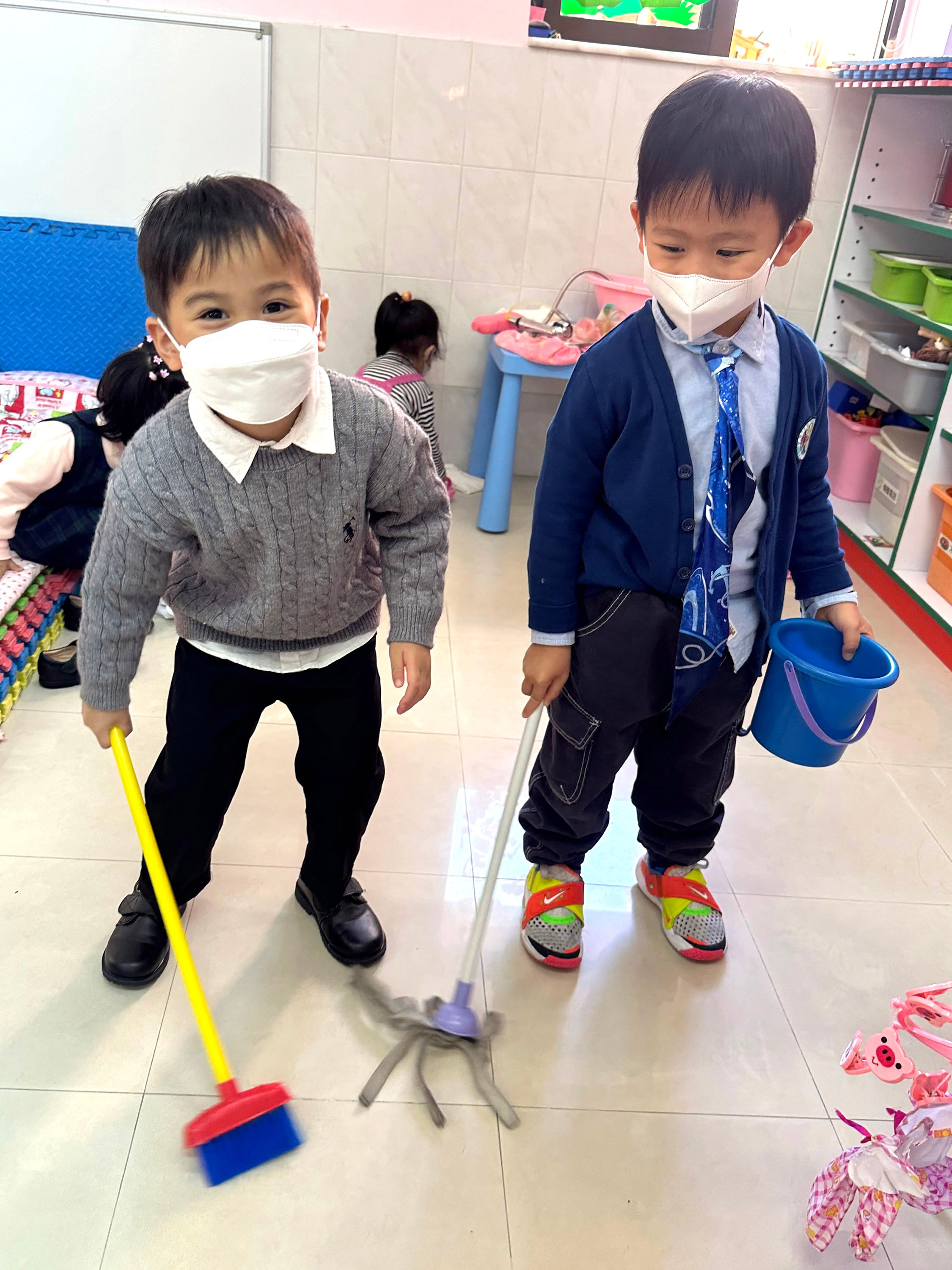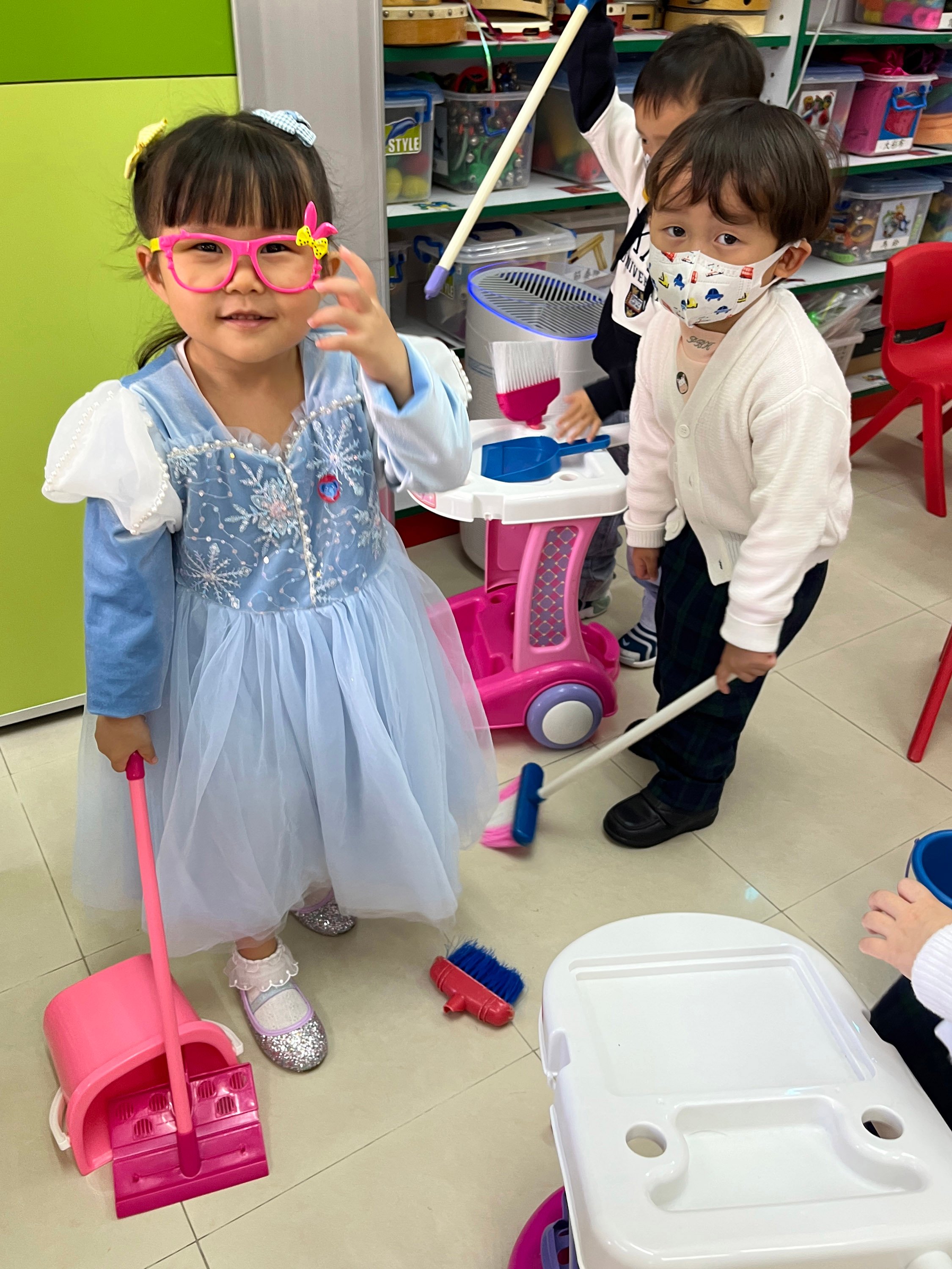 2024年1月18日、19日の両日、ナーサリークラスでは "I am a Big Brother "をテーマに、"Family Fun Show "を開催しました。ネクタイのお父さん、エプロンのお母さん、好きなアニメのキャラクターのお姉さん、セーターの弟など、保護者の方々が子どもたちにさまざまな家族の衣装を着せてくださり、とてもかわいかったです!先生たちは、プレイルームを温かい家庭、スーパーマーケット、お茶の間に変身させた。お父さん、お母さん、お姉さん、お兄さんたちは、スーパーマーケットで買い物をしたり、お茶屋さんで点心を食べたり、家で家事をしたりしました!