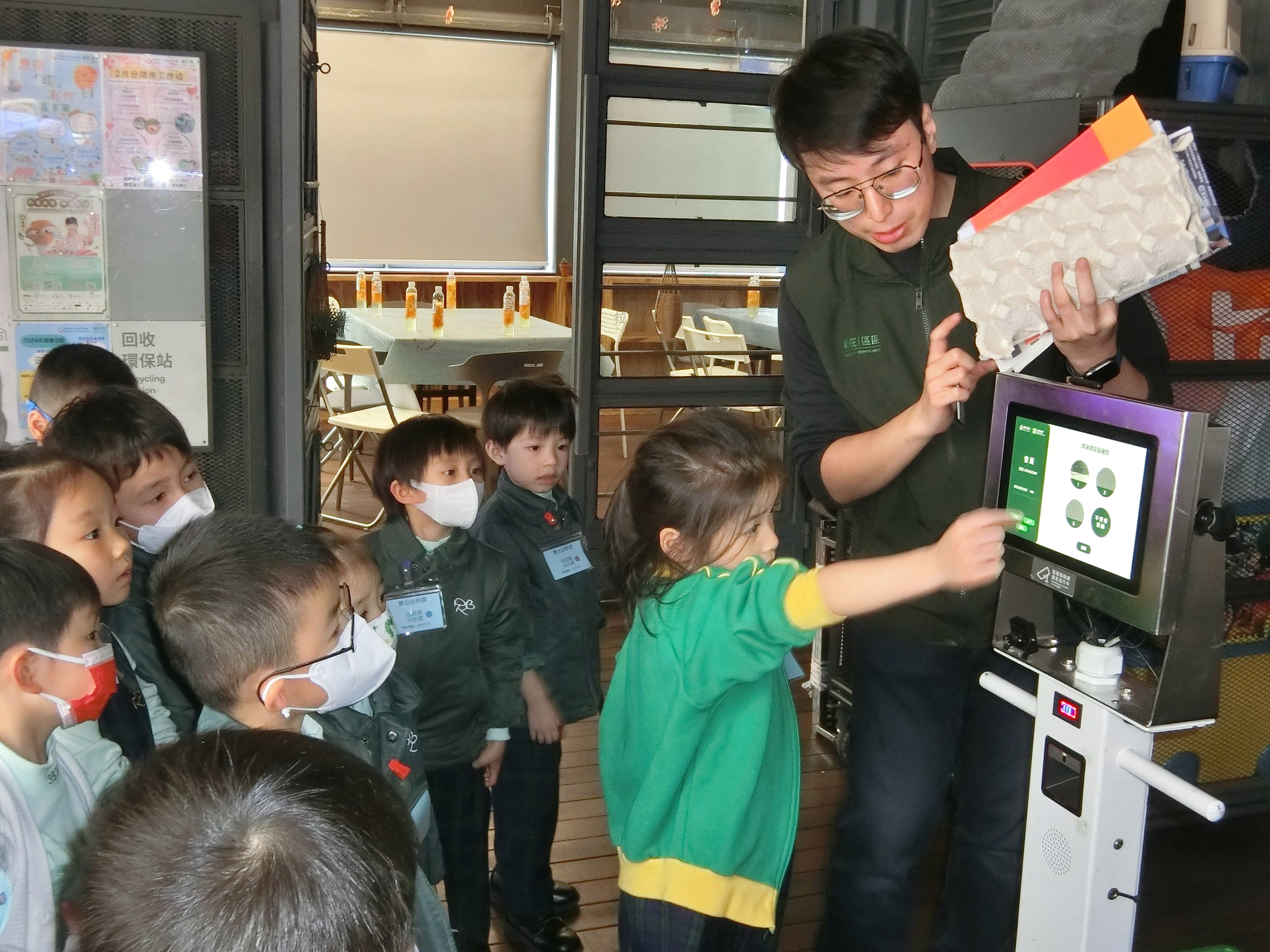 为配合主题《派对之后》的学习活动,低班幼儿分别于2024年2月27、28、29日一连三天,分别到「绿在湾仔」进行参观学习,当中幼儿除了认识到不同颜色回收箱的用途和分类方法外,还认识到「绿仔卡」的运用方法。在活动中,幼儿更学习到利用橙皮制作环保酵素,明白厨余真有用,相信幼儿们都十分期待三个月后使用环保酵素清洁呢!