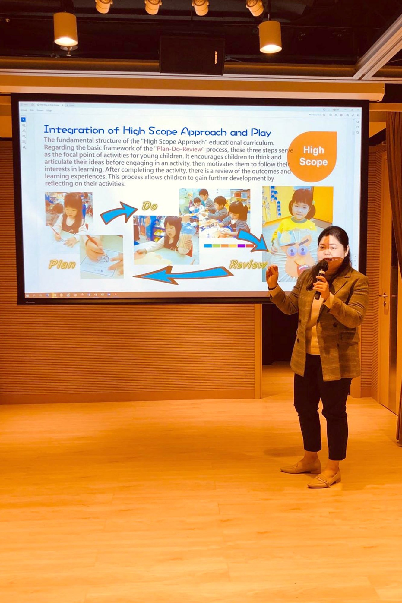 La signora Ma è stata invitata dal Dipartimento di Educazione della Prima Infanzia dell'Università dell'Educazione di Hong Kong come ospite per condividere la nostra esperienza di combinazione dell'approccio ad ampio raggio e del gioco libero con gli insegnanti di scuola materna in servizio locali e inglesi, rispettivamente nel marzo 2024. Sia i docenti universitari che gli studenti hanno apprezzato le caratteristiche didattiche della nostra scuola dell'infanzia, che utilizza il concetto di ampio respiro e il gioco libero per consentire ai bambini di sviluppare le loro potenzialità e arricchire le loro esperienze di apprendimento.