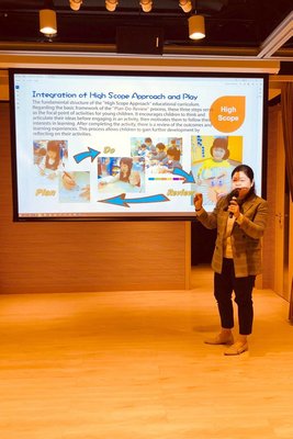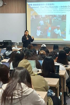 馬副校長獲得香港教育大學幼兒教育學系的邀請擔任客席講師,於2024年3月分別與本地及英文班職前幼教老師分享本園高廣度與自由遊戲結合的教學經驗。無論大學講師還是學生,都十分欣賞本園的教學特色,運用高廣度理念進行自由遊戲,讓幼兒更能夠發揮潛能,豐富學習經驗。