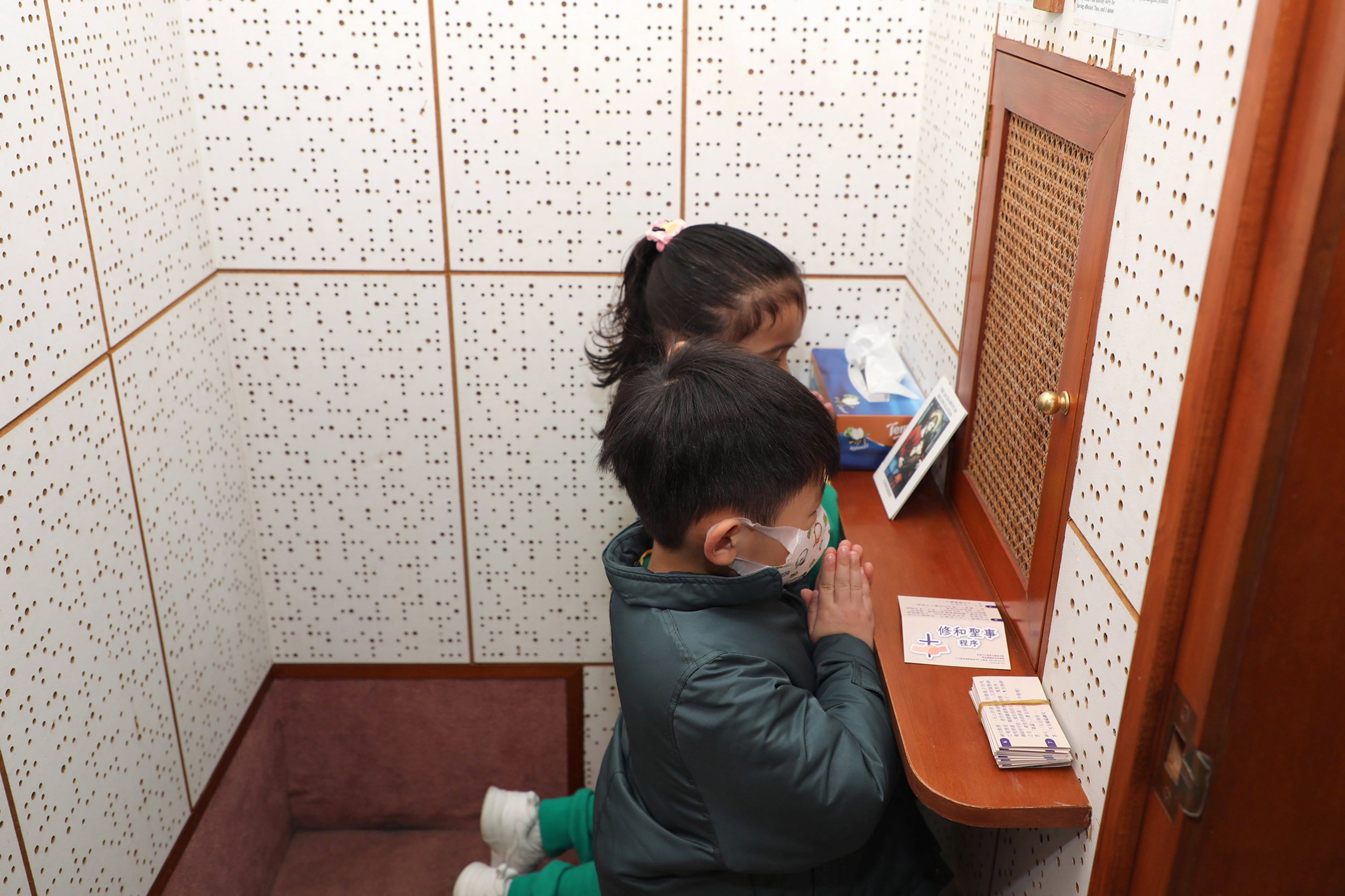 本园于2024年3月9日(六) 于赤柱圣亚纳堂举行亲子朝圣活动,我们一起朝拜圣体和祈祷,随后导赏员带领我们参观及讲解圣堂的特色,原来圣亚纳堂的取名是来自圣母玛利亚妈妈的名字。她有超过60年历史,利用大窗增加采光,十字架后的彩绘玻璃讲述平息风浪的故事,导赏员鼓励我们遇到困难时,不要害怕,因为耶稣与我们在一起。导赏员亦介绍修和室和花园内的圣像画,让非公教家庭对天主教更认识。最后,家长与小朋友一同穿了一条念珠,并一同念天主经、圣母经及圣三光荣经以感谢天主的带领。