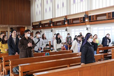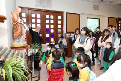 本園於2024年3月9日(六) 於赤柱聖亞納堂舉行親子朝聖活動,我們一起朝拜聖體和祈禱,隨後導賞員帶領我們參觀及講解聖堂的特色,原來聖亞納堂的取名是來自聖母瑪利亞媽媽的名字。她有超過60年歷史,利用大窗增加採光,十字架後的彩繪玻璃講述平息風浪的故事,導賞員鼓勵我們遇到困難時,不要害怕,因為耶穌與我們在一起。導賞員亦介紹修和室和花園內的聖像畫,讓非公教家庭對天主教更認識。最後,家長與小朋友一同穿了一條唸珠,並一同唸天主經、聖母經及聖三光榮經以感謝天主的帶領。