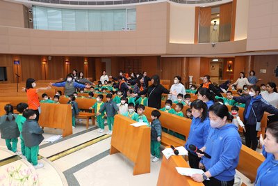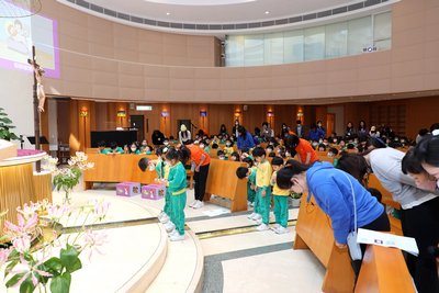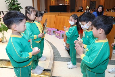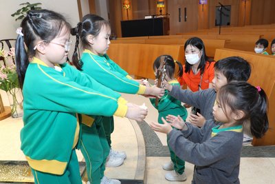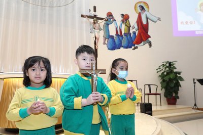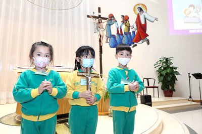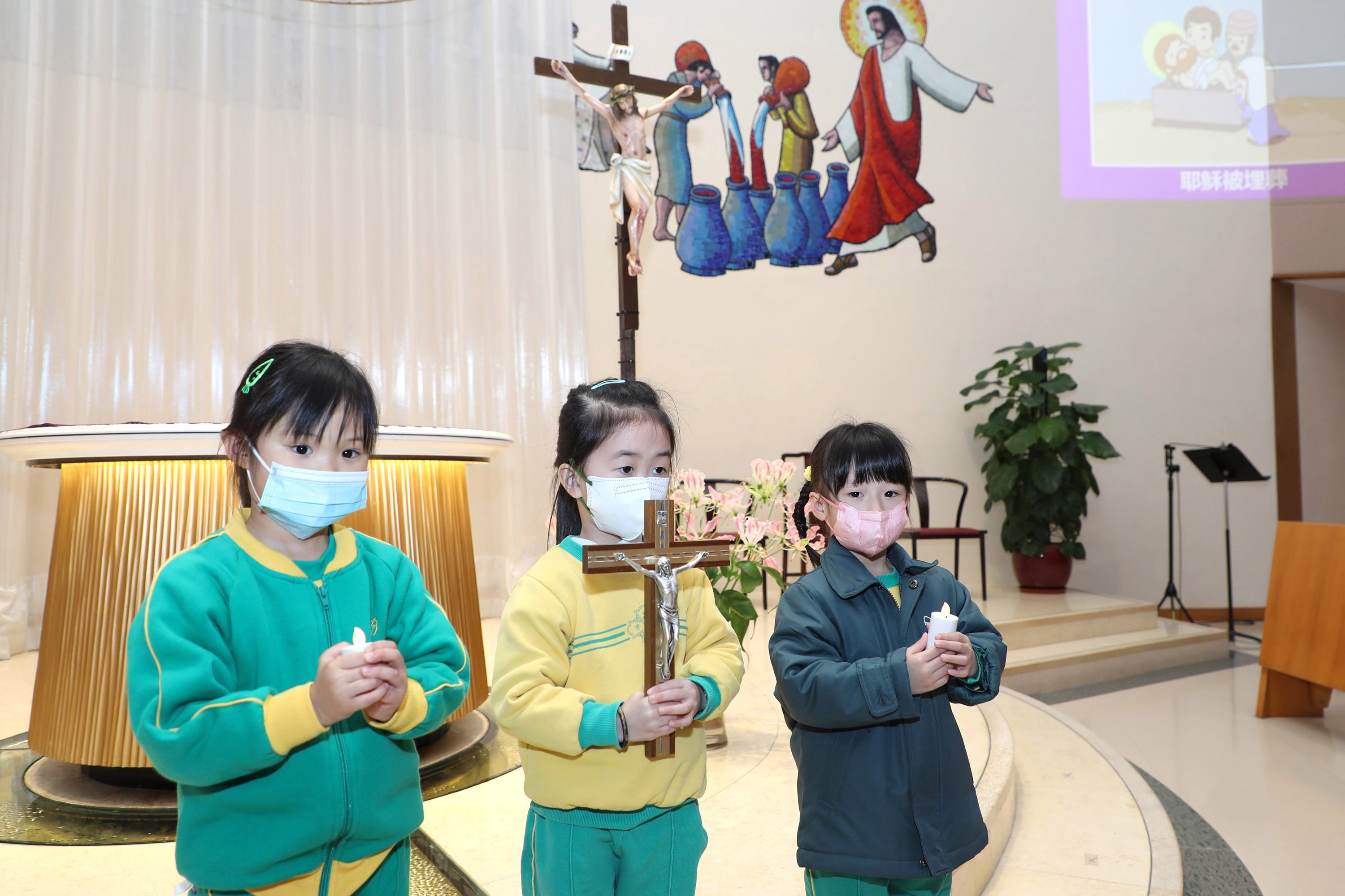 四旬期是復活節前的準備期,今年四旬期的主題為「共議同行」,為了幫助幼兒準備心靈善渡四旬期,迎接耶穌基督的復活,本園於2024年3月13日(星期三)在聖母聖衣堂舉行四旬期祈禱會。當日我們一起聆聽老師演繹耶穌行苦路的過程,讓他們明白耶穌經歷的苦路是為了愛我們,我們也要以愛去報答祂。過程中,由高班及低班同學在每一處苦路拿著十字架和電子蠟蠋,並一起默想在日常生活有沒有以耶穌基督的愛去關愛貧窮弱小的人,時常祈禱。最後,我們更在主的愛內彼此互祝平安,幼兒把零用錢捐給「天主教四旬期運動」,以發揚愛德精神。