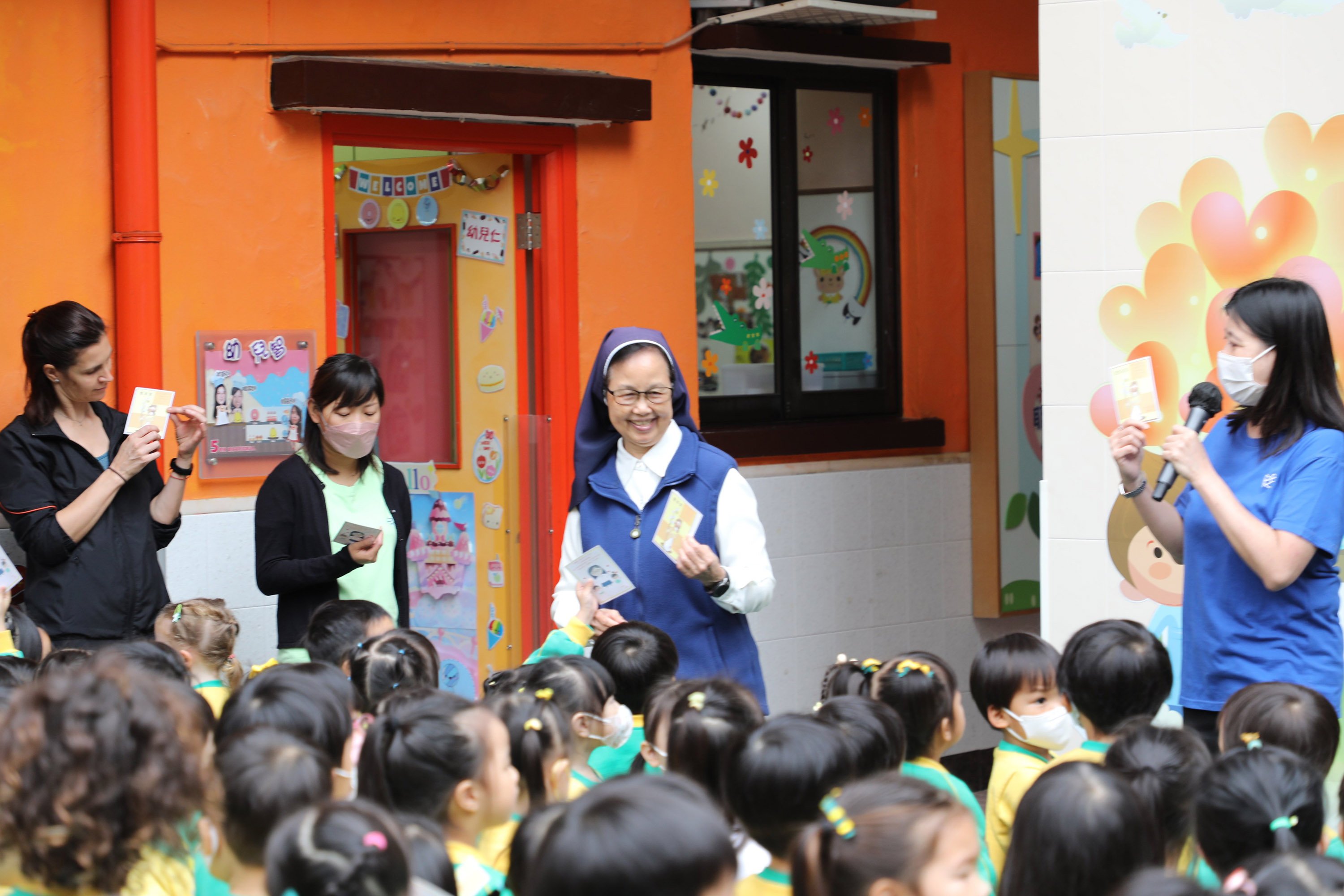 本园3月18日(星期一)预祝甘修女主保瞻礼,我们一众师生及职工一起拍了短片送给甘修女,借着短片感谢甘修女多年来的带领及照顾,并祝福她身体健康,主宠满溢,每天充满平安及喜乐!甘修女亦送上她的祝福,看!甘修女笑得多么灿烂!