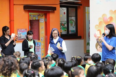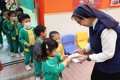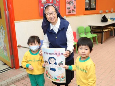 本園3月18日(星期一)預祝甘修女主保瞻禮,我們一眾師生及職工一起拍了短片送給甘修女,藉著短片感謝甘修女多年來的帶領及照顧,並祝福她身體健康,主寵滿溢,每天充滿平安及喜樂!甘修女亦送上她的祝福,看!甘修女笑得多麼燦爛!