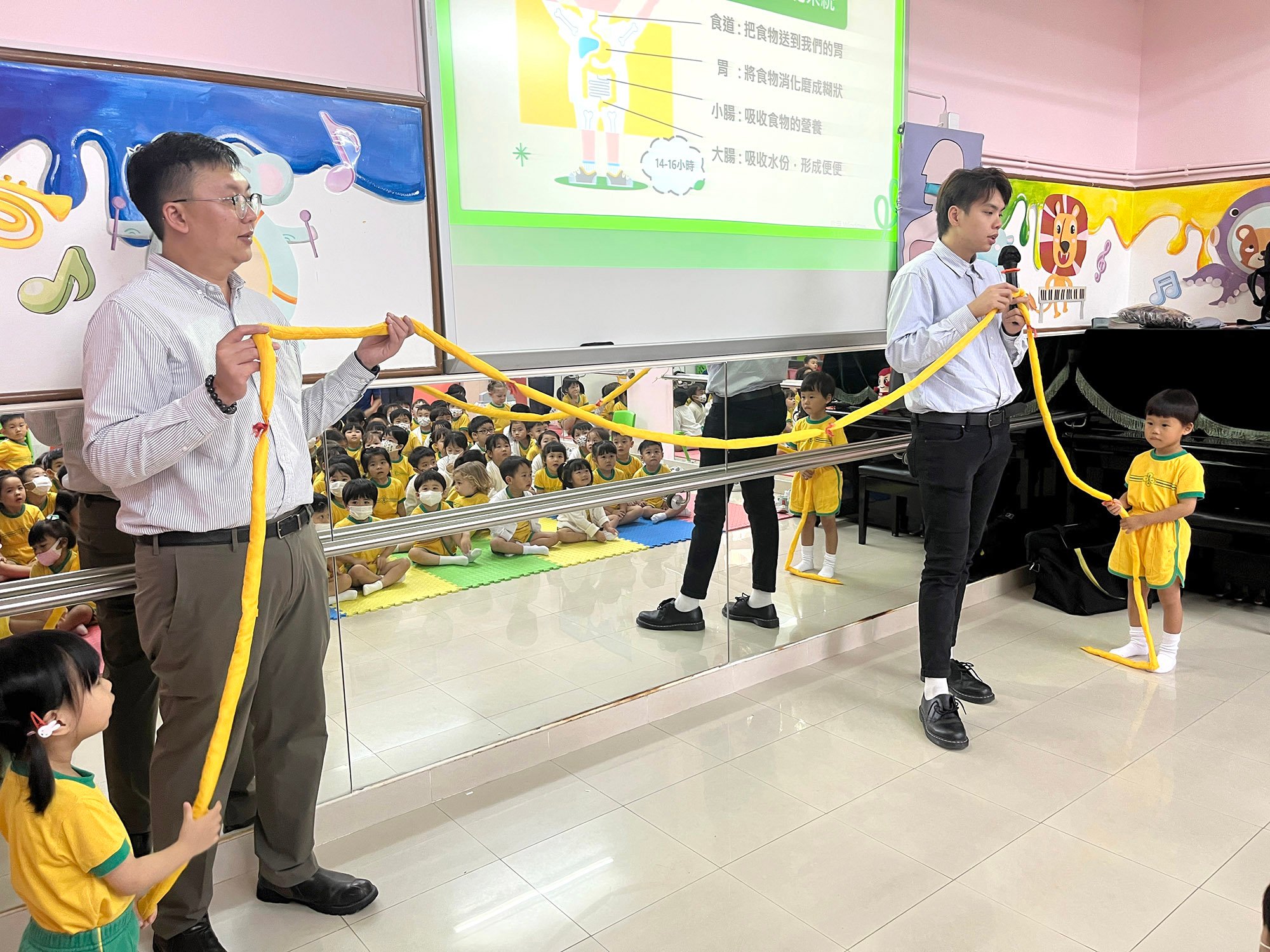 2024年4月29日、K1クラスのテーマ「プリンセスは病気」にちなんで、K1クラスの生徒を対象に「食品栄養セミナー」を開催した。講師はまず、模擬人体臓器教材を使って消化器系の構造を子どもたちに紹介した。講演者は、腸の機能を紹介するため、子どもたちに小腸の支柱を持ってもらい、子どもたちは小腸の長さに大変驚き、健康的な食事と腸の動きの関係について説明した。その後、アニメーションを通じ、腸内のプロバイオティクスが有害な細菌と闘い、腸の健康を維持するのに役立つことを紹介し、双方向のクイズゲームも行った。子どもたちは健康的な食事について熱心に学び、講演者に感謝の気持ちを伝えるカードまで作っていた。