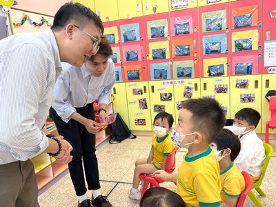 為配合幼兒班主題《公主生病了》,我們於2024年4月29日為幼兒班學生舉行「食物營養講座」。當天講者先利用模擬人體器官教材,讓幼兒初步認識消化系統結構,講者邀請幼兒拿著小腸道具介紹腸臟功能,幼兒都十分驚訝小腸的長度,並講解健康飲食與排便的關係;其後透過動畫讓幼兒認識腸道內的益生菌有助擊退有害細菌和保持腸道健康,並與幼兒進行互動問答遊戲。幼兒投入參與,學習健康飲食知識,幼兒更特意為講者製作感謝卡,以示謝意。