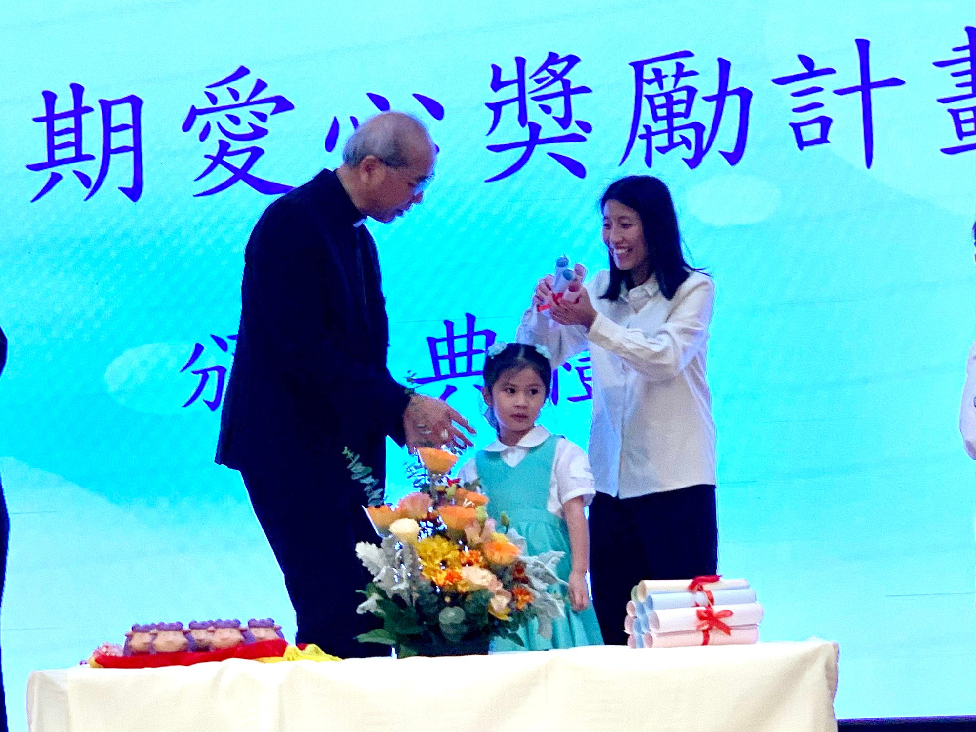 四旬節愛の親子ぬりえコンテストに参加し、功労賞を受賞しました。香港教区補佐司教のマイケル・ハーディ司教様より賞をいただき、大変光栄に思います。見てください!子どもたちの満面の笑みです!