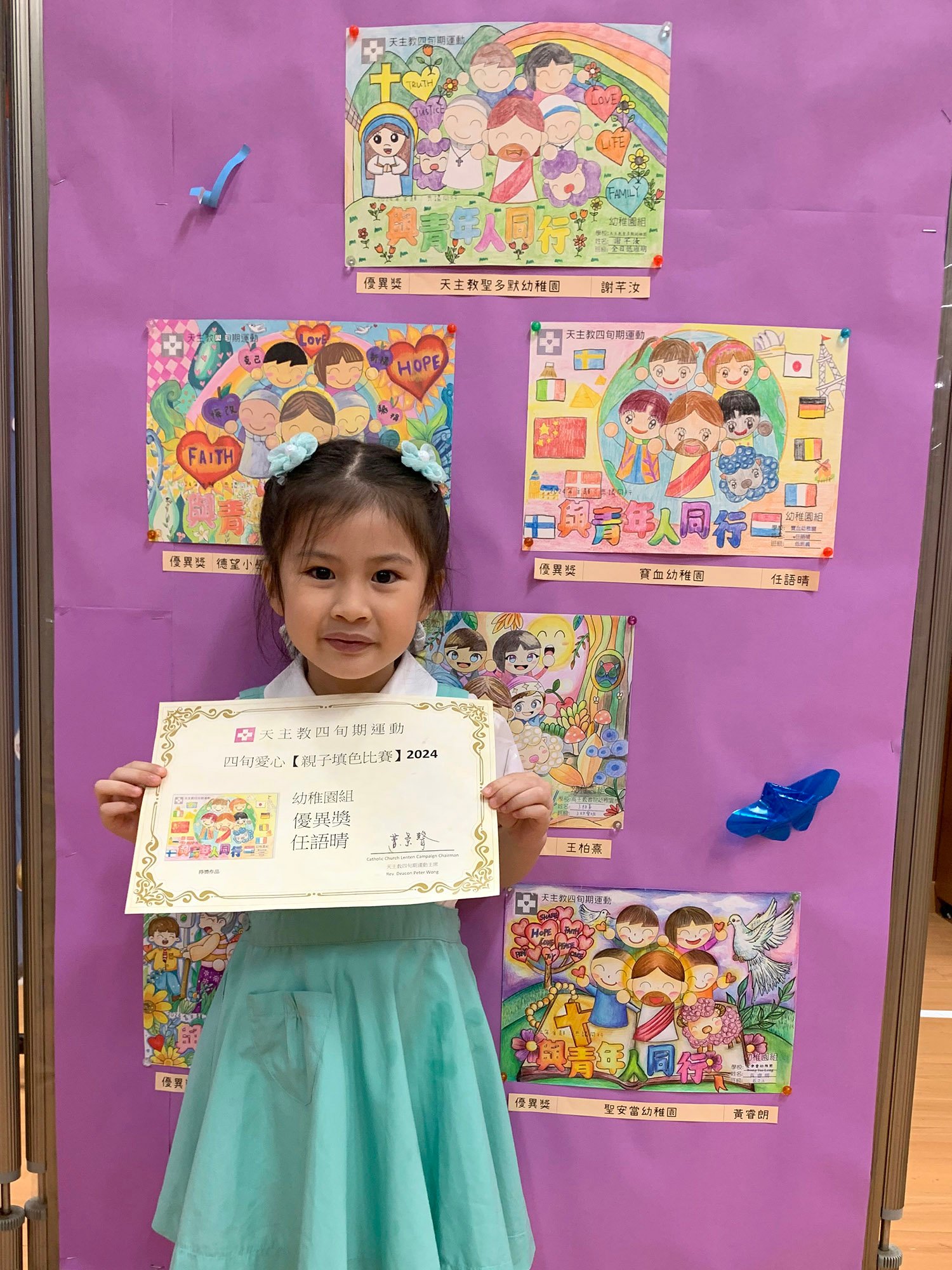 本園家長積極支持天主教四旬期運動2024,參加四旬愛心親子填色比賽並獲得優異獎,我們十分榮幸香港教區輔理主教夏志誠主教頒發的獎狀。看!小朋友的笑容多麼燦爛啊!