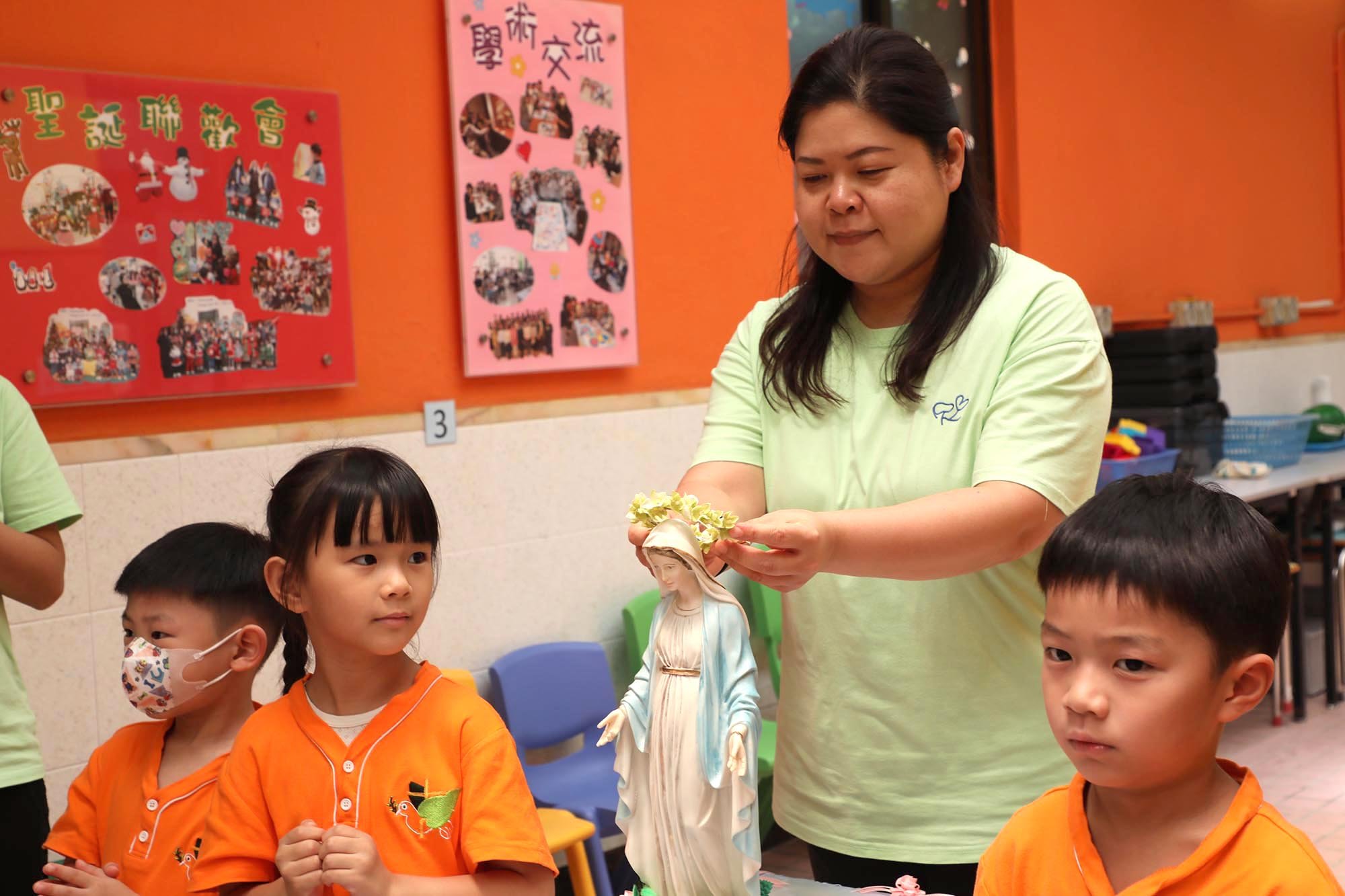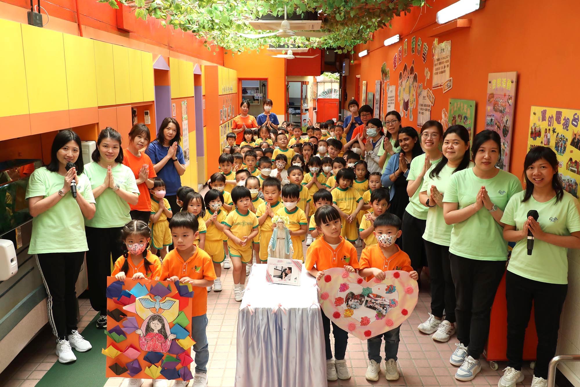 5월 29일(수), 우리 학교는 성모의 달을 맞아 특별 활동인 성모 퍼레이드를 준비했습니다. 간 수녀와 교사, 그리스도의 작은 아이들 대표들이 성모상을 호위하며 학교를 돌았고, 모든 교사와 학생들이 성모님의 차를 따라가는 장관을 연출했습니다. 행진하는 동안 어린이들의 소원을 위해 기도하고 '파티마의 성모', '성모님은 마음속 아이를 사랑하시네', '중국의 성모님'을 부르며 성모님께 감사와 찬양을 보냈습니다. 퍼레이드가 끝난 후 각 반의 대표들이 꽃을 선물하고 어린이들은 성모님께 사랑과 헌신을 표현하기 위해 하트와 입맞춤을 했습니다.