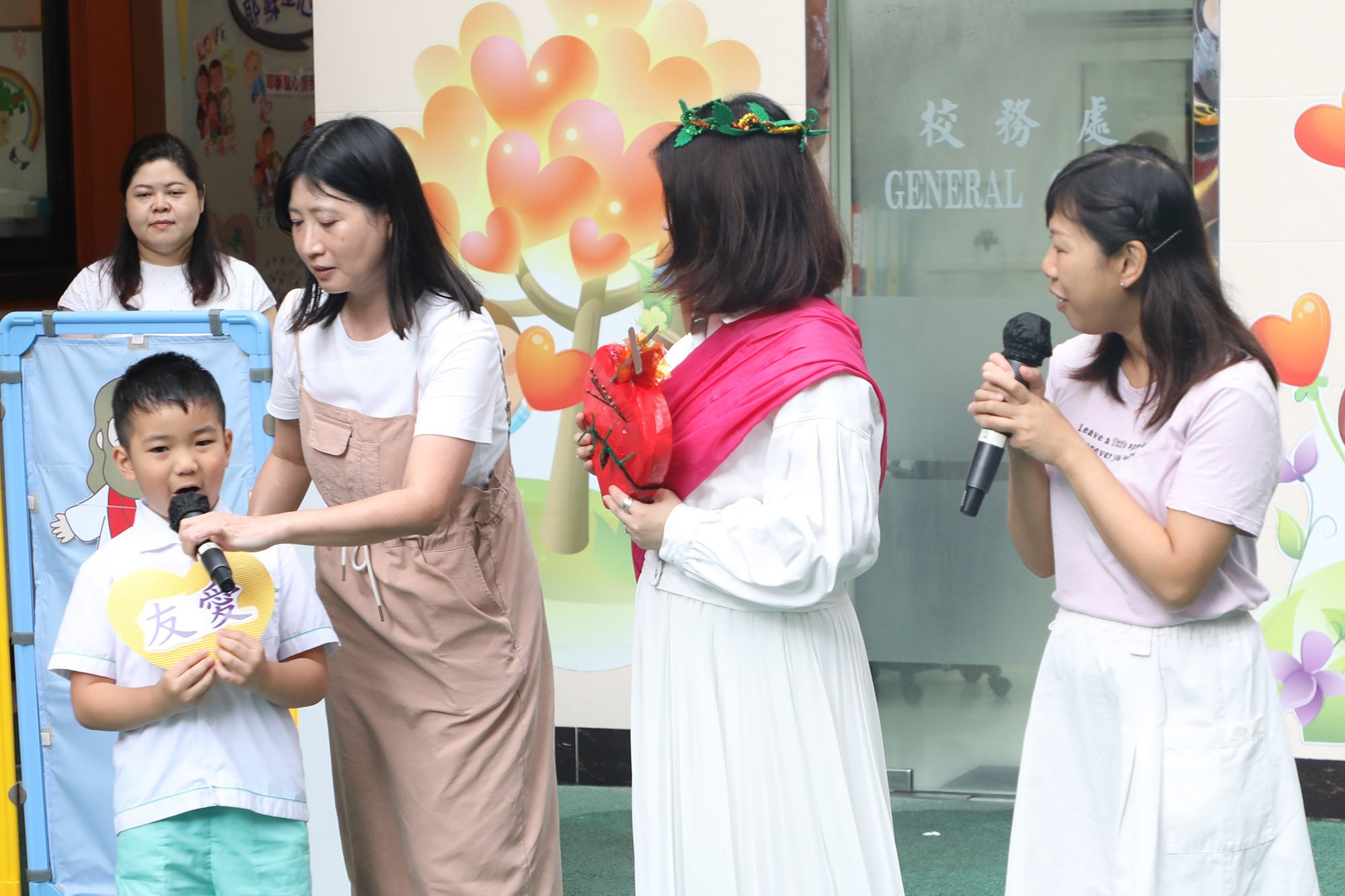 Giugno è il mese del Sacro Cuore di Gesù. Giovedì 13 giugno, la scuola ha tenuto una cerimonia speciale per onorare il Sacro Cuore di Gesù. Prima abbiamo presentato il Sacro Cuore di Gesù attraverso degli annunci, poi gli insegnanti hanno interpretato il ruolo di Fratello Gesù nella scuola materna Preziosissimo Sangue e i bambini hanno visto le spine nel Sacro Cuore di Gesù e hanno promesso di impegnarsi a compiere più atti di amore e gentilezza per alleviare le sofferenze di Fratello Gesù. Guardate! Fratello Gesù era così felice!