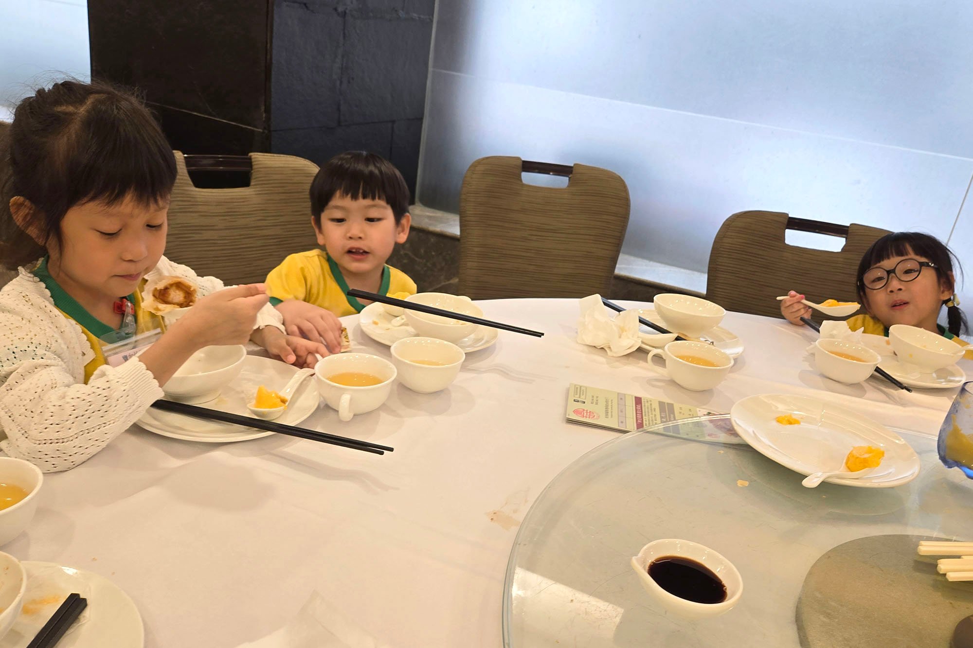 On June 24, 2024 (Monday), in line with the theme of "Holiday Tour to Hong Kong", teachers led K2B students to experience the traditional Chinese tea drinking culture in a restaurant. The children read the dim sum paper and discussed their favorite Chinese dim sum, then tasted the flavors of the dim sum and tried different kinds of tea to experience the Chinese culture of drinking tea!