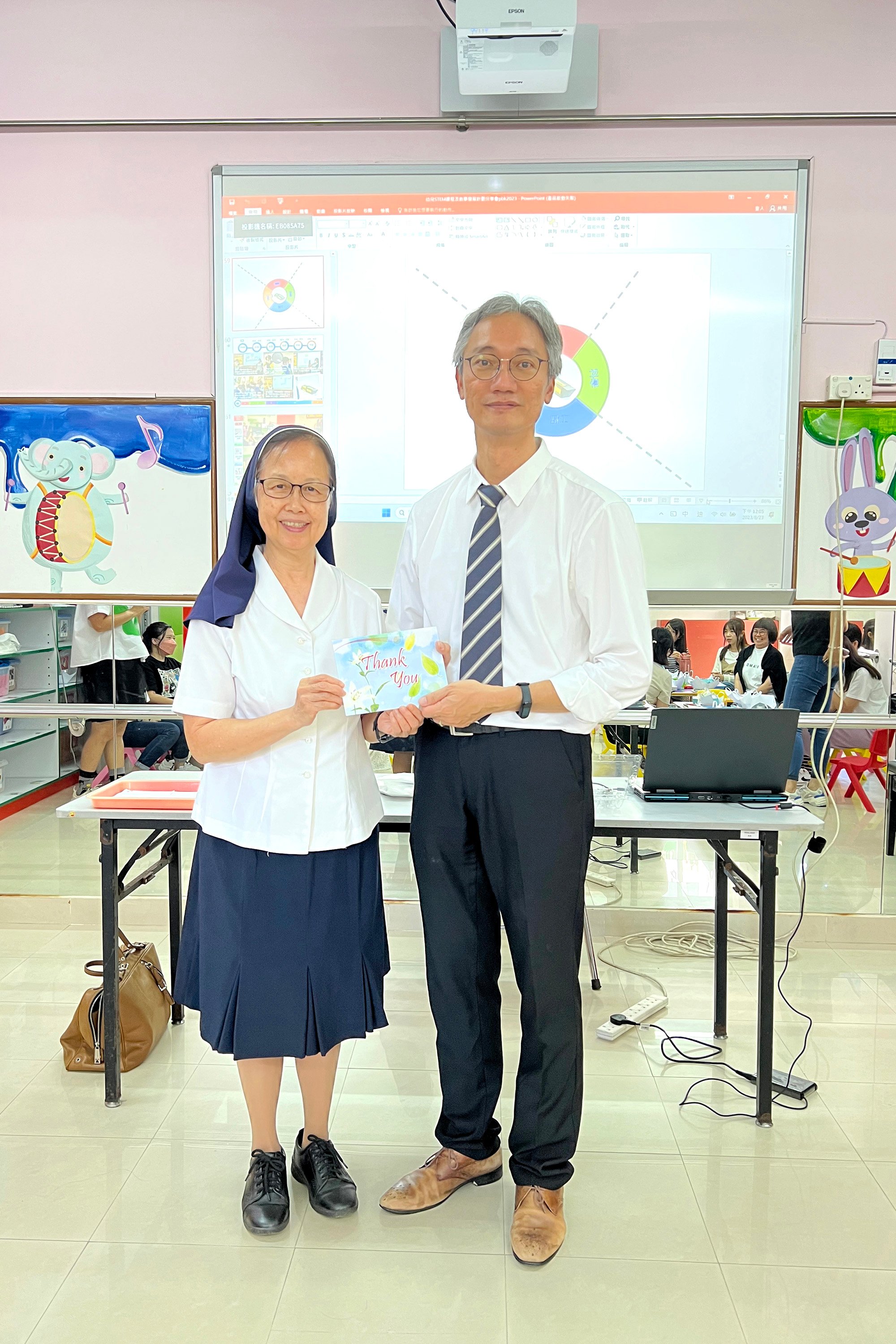 2023年8月23日为教师培训工作坊,由洪进华先生带领检视22-23年度本校进行STEM教学的成果分享,过去一年,老师实践了设计STEM的教学活动,让幼儿「从做中学」,学习生活化的科学知识,效果非常成功及理想。
