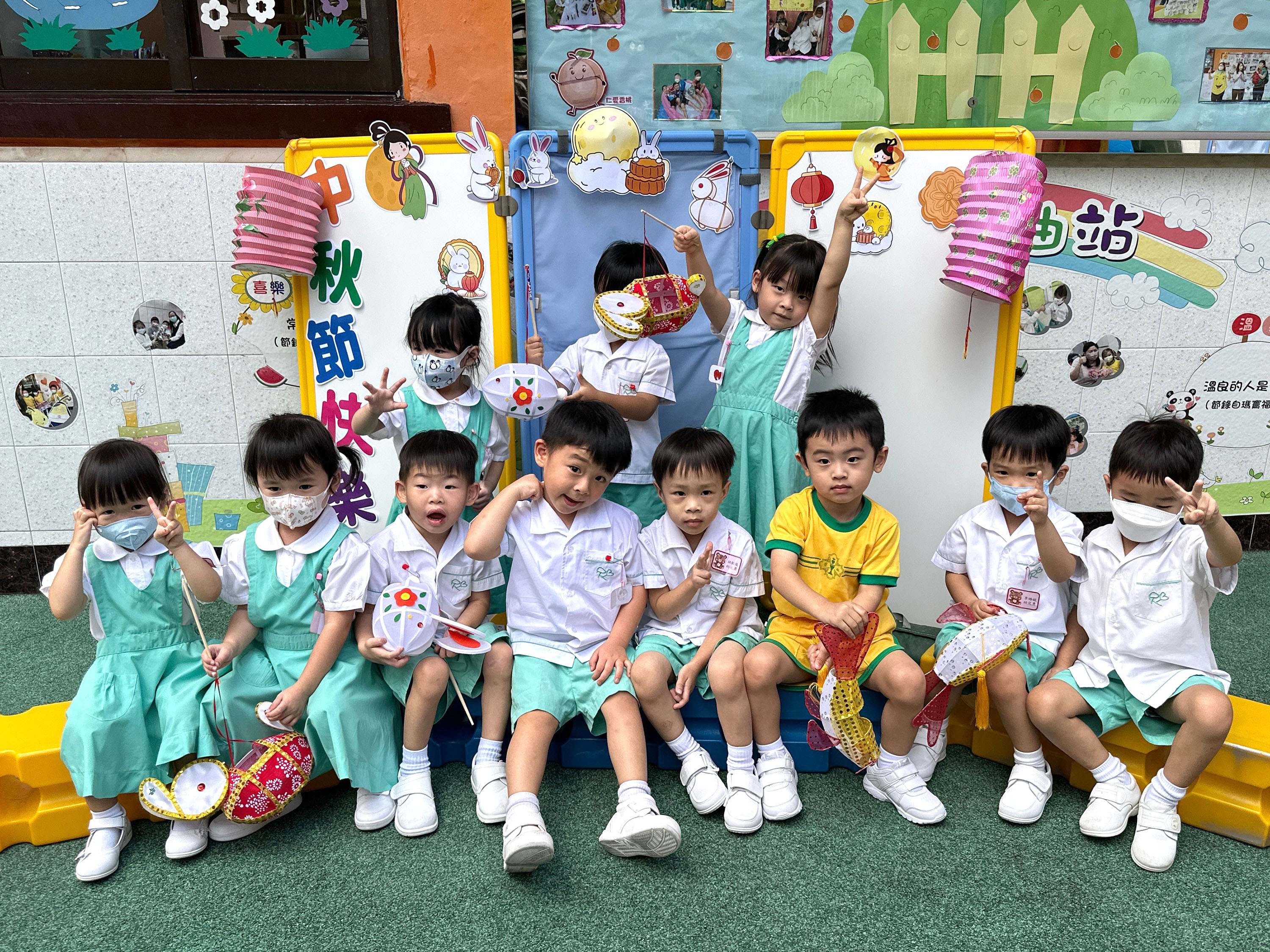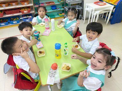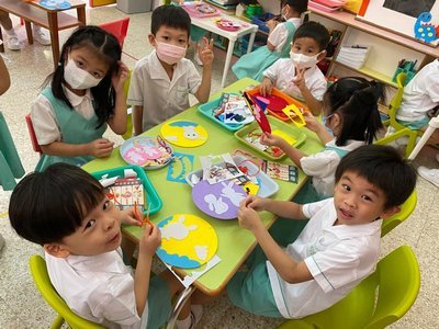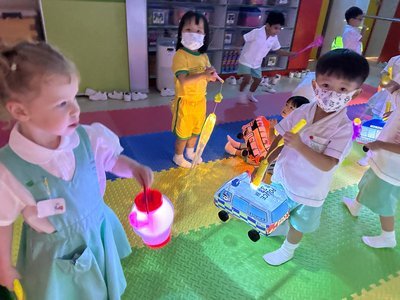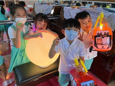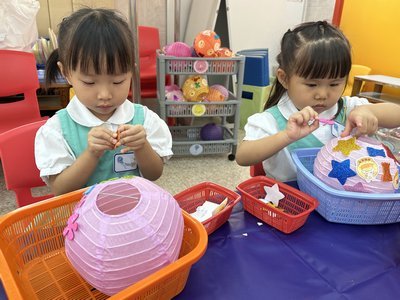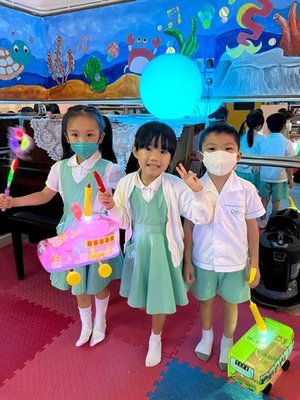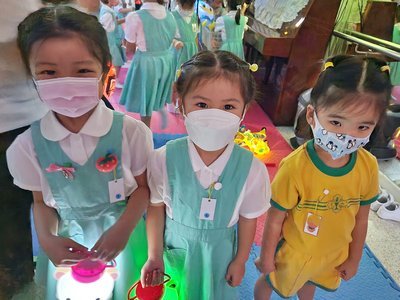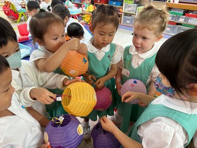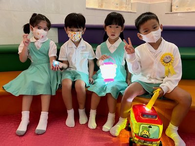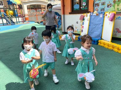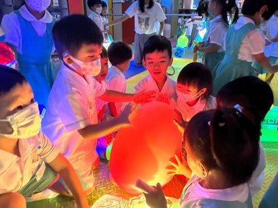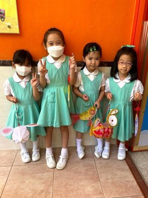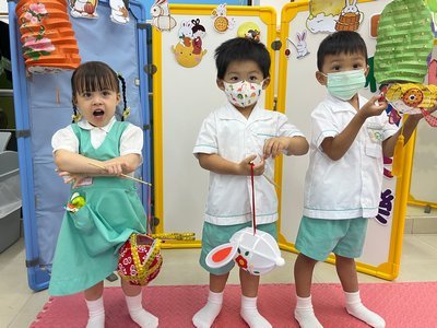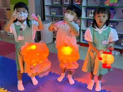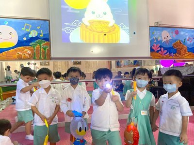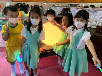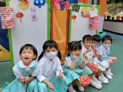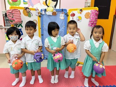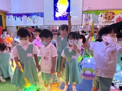 為慶祝一年一度的中秋佳節,讓幼兒感受濃厚的節日氣氛,本園於2023年9月28日舉行了「中秋節提燈會」,老師把各色各樣具中國傳統特色的手紮燈籠懸掛在校舍內,有活潑的小兔和金光閃閃的金魚等,幼兒都十分喜愛。此外,透過中國傳統故事讓幼兒認識中秋節的來源,同時亦欣賞了彩燈會、舞火龍和月餅製作等影片,活動期間幼兒更在漆黑的房間中與老師一起欣賞LED燈飾,玩卡通燈籠,還有一起製作月餅和花燈手工,師生們共渡了一個熱鬧和充滿氣氛的中秋節呢!