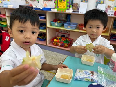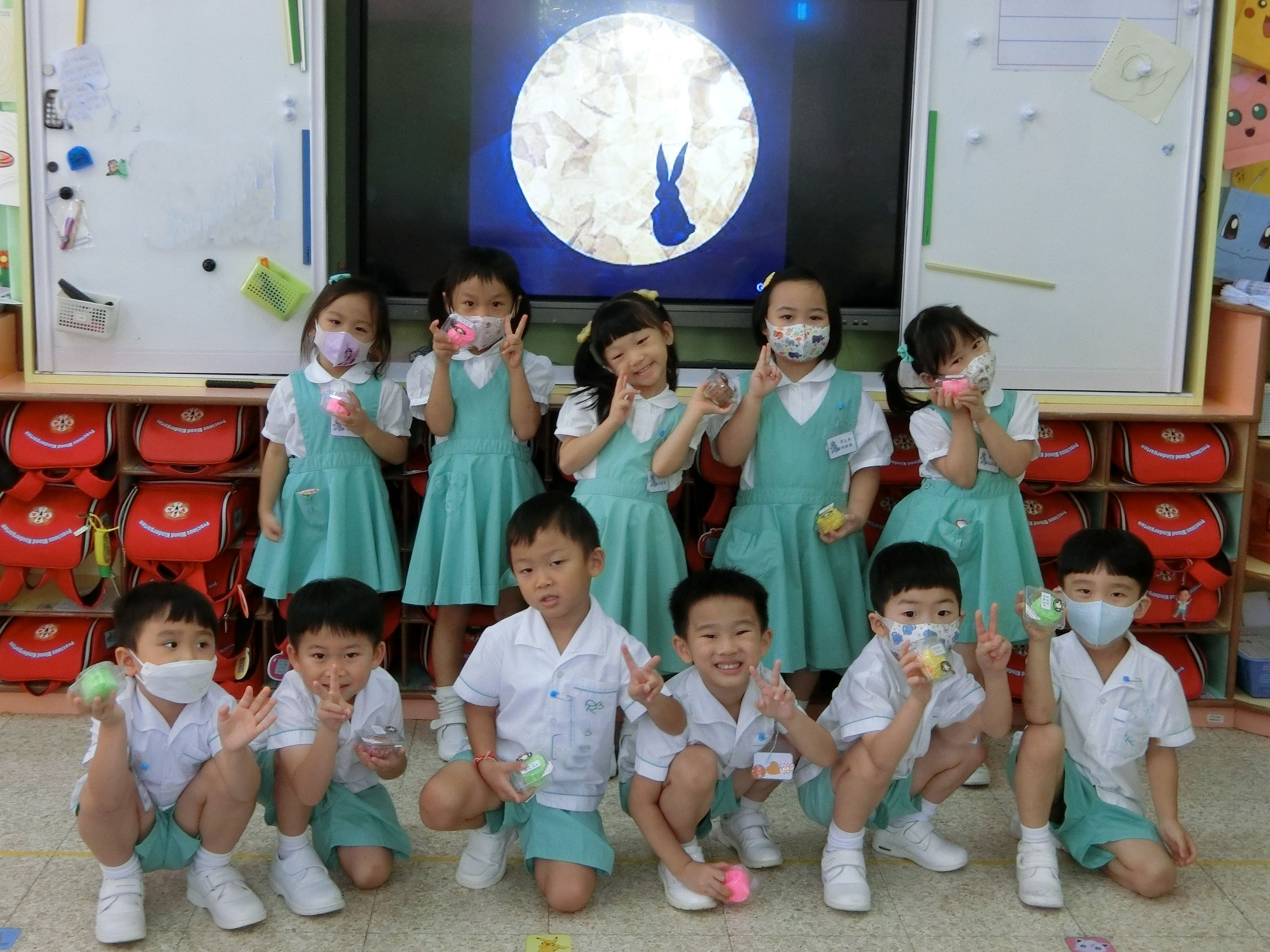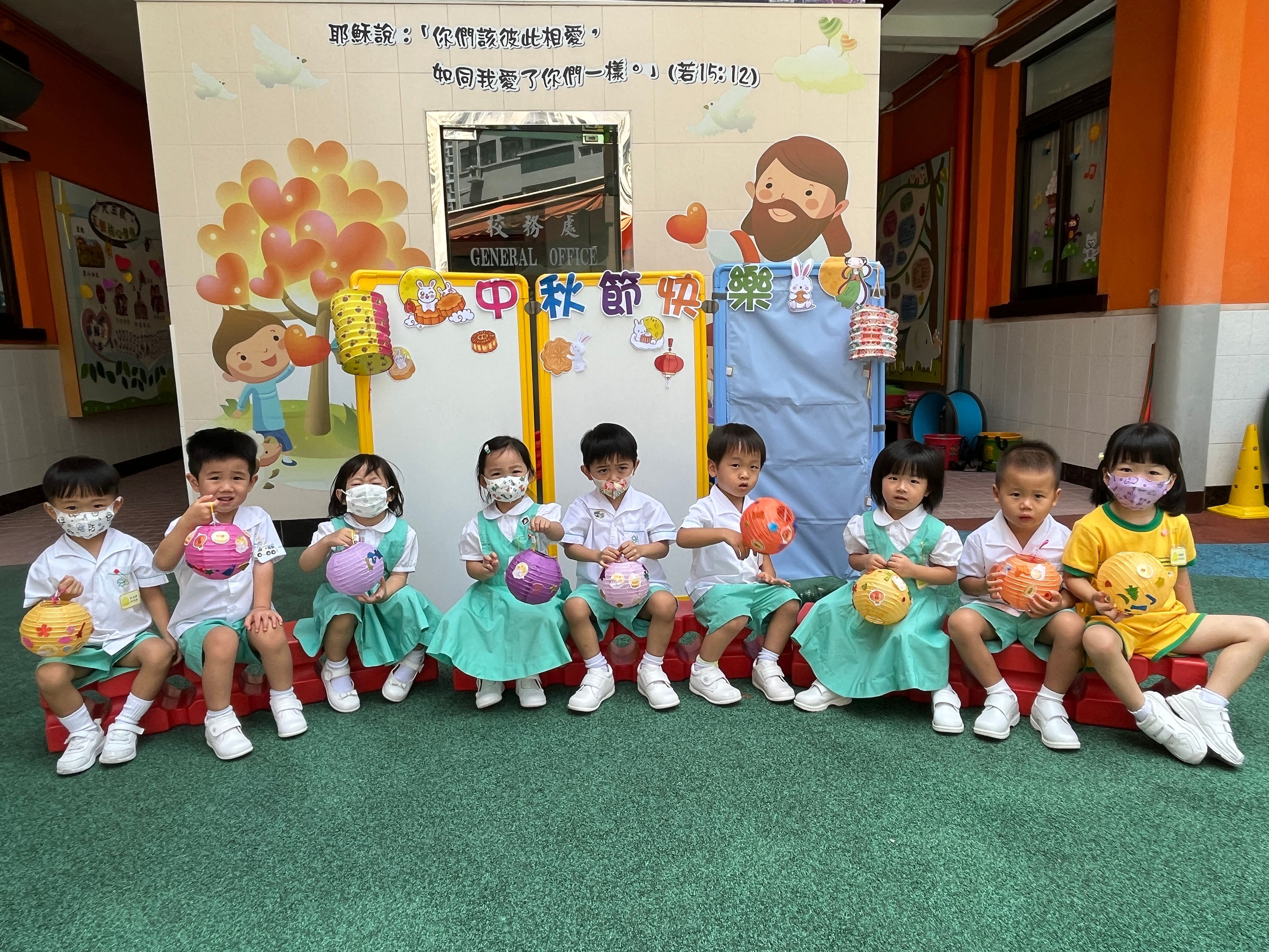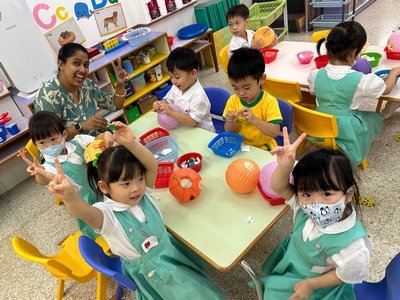 為慶祝一年一度的中秋佳節,讓幼兒感受濃厚的節日氣氛,本園於2023年9月28日舉行了「中秋節提燈會」,老師把各色各樣具中國傳統特色的手紮燈籠懸掛在校舍內,有活潑的小兔和金光閃閃的金魚等,幼兒都十分喜愛。此外,透過中國傳統故事讓幼兒認識中秋節的來源,同時亦欣賞了彩燈會、舞火龍和月餅製作等影片,活動期間幼兒更在漆黑的房間中與老師一起欣賞LED燈飾,玩卡通燈籠,還有一起製作月餅和花燈手工,師生們共渡了一個熱鬧和充滿氣氛的中秋節呢!