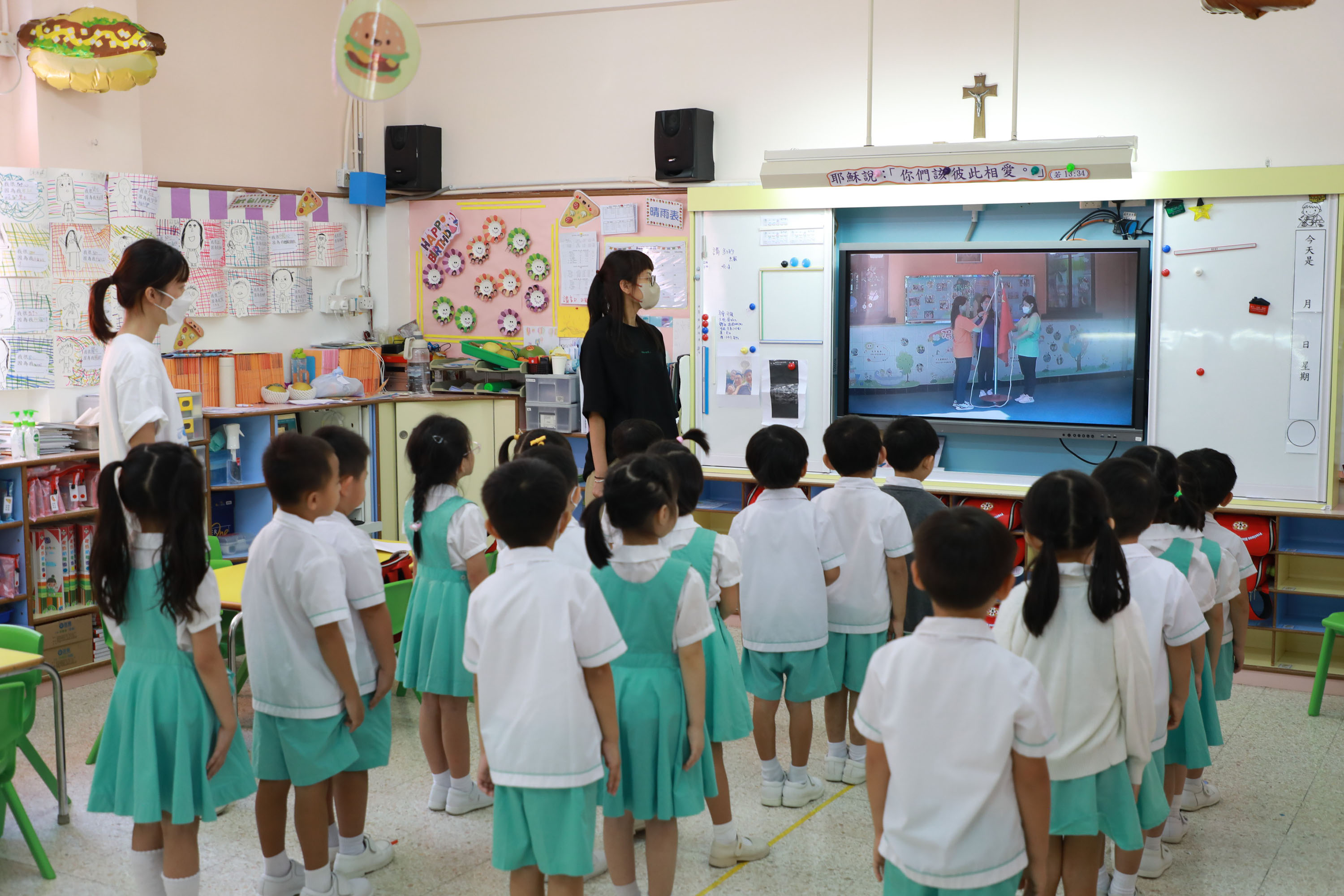 本校於9月28日在校內舉行「童賀國慶」活動,在早午會時段幼兒透過觀看操場直播升旗禮,讓幼兒認識及體驗參加升旗禮和唱國歌時要注意的禮儀及態度,並透過故事影片,讓幼兒認識中國國慶節的意義,同時認識中國國旗和國歌,共同感受國慶節的歡樂。