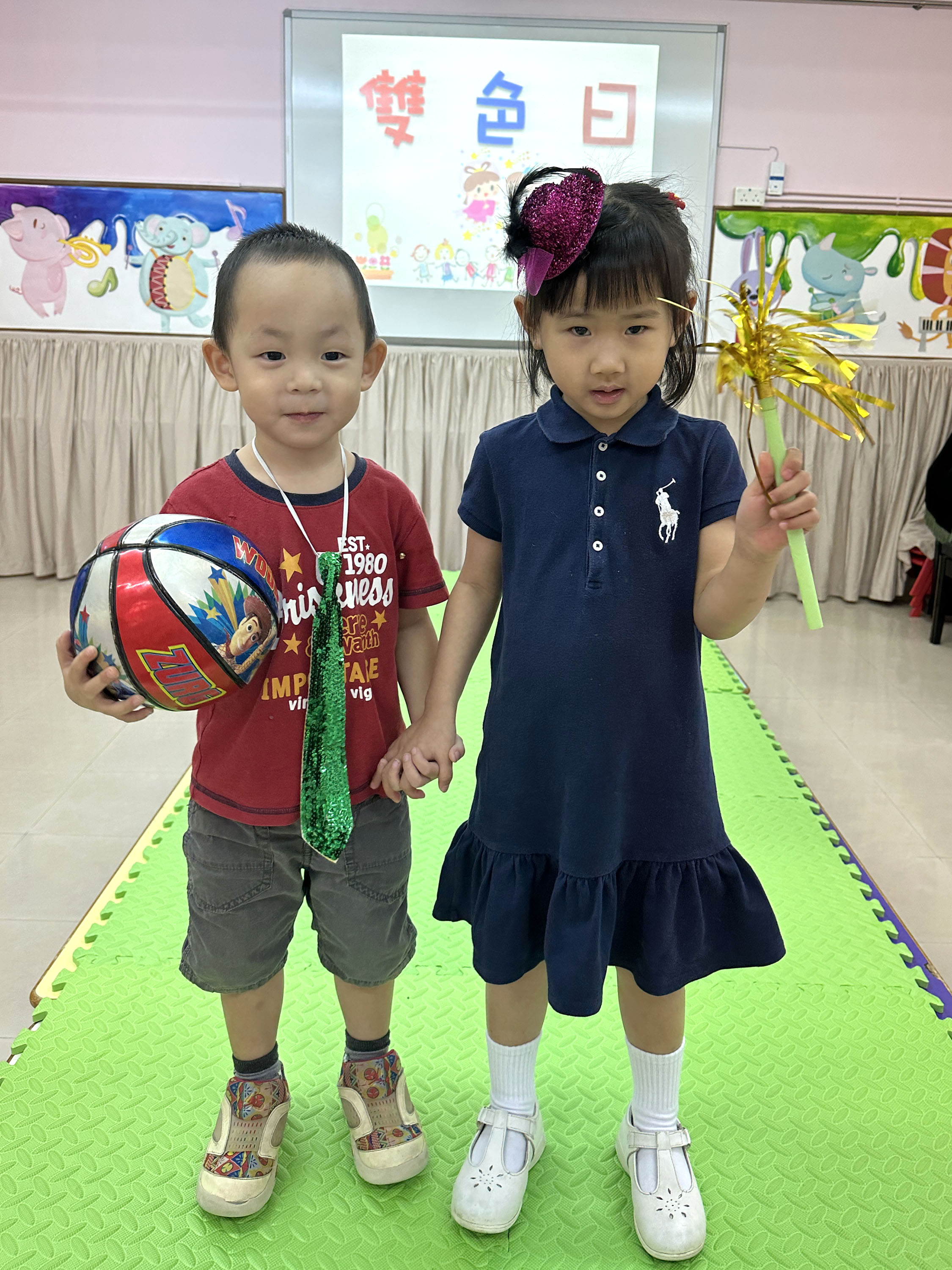 On Thursday, October 12, 2023, the Nursery children were introduced to 'Red' and 'Blue' and had a 'Double Colors Day' in the school. The children and teachers dressed up and returned to school in red or blue. The 'Little Models' showed off their beautiful outfits on the small stage with graceful steps and cute poses.