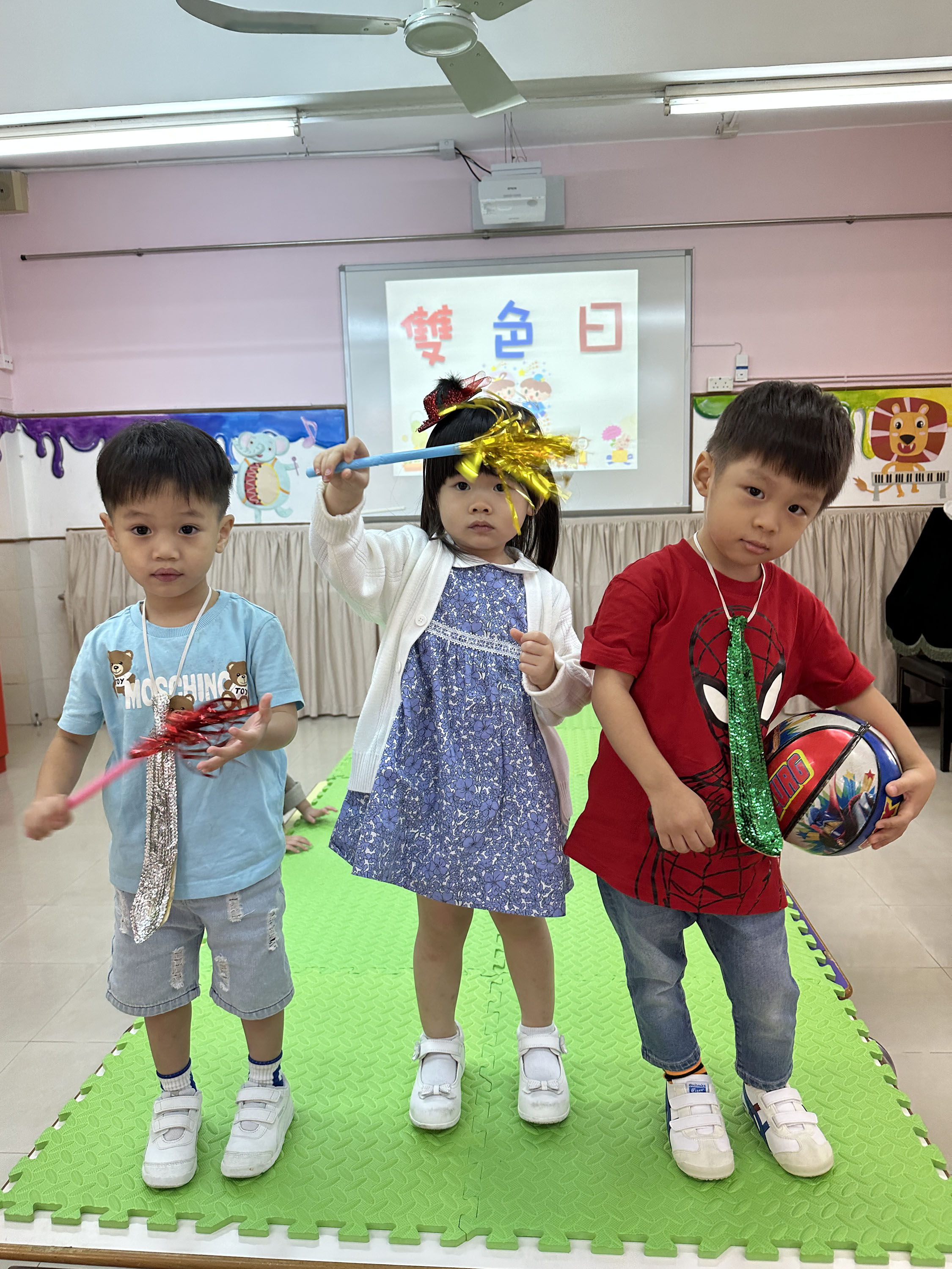 Le jeudi 12 octobre 2023, les enfants de la maternelle ont été initiés au ' rouge ' et au ' bleu ' et ont eu une ' journée double couleur ' à l'école. Les enfants et les enseignants se sont déguisés et sont rentrés à l'école en rouge ou en bleu. Les 'petits mannequins' ont montré leurs belles tenues sur la petite scène avec des pas gracieux et des poses mignonnes.