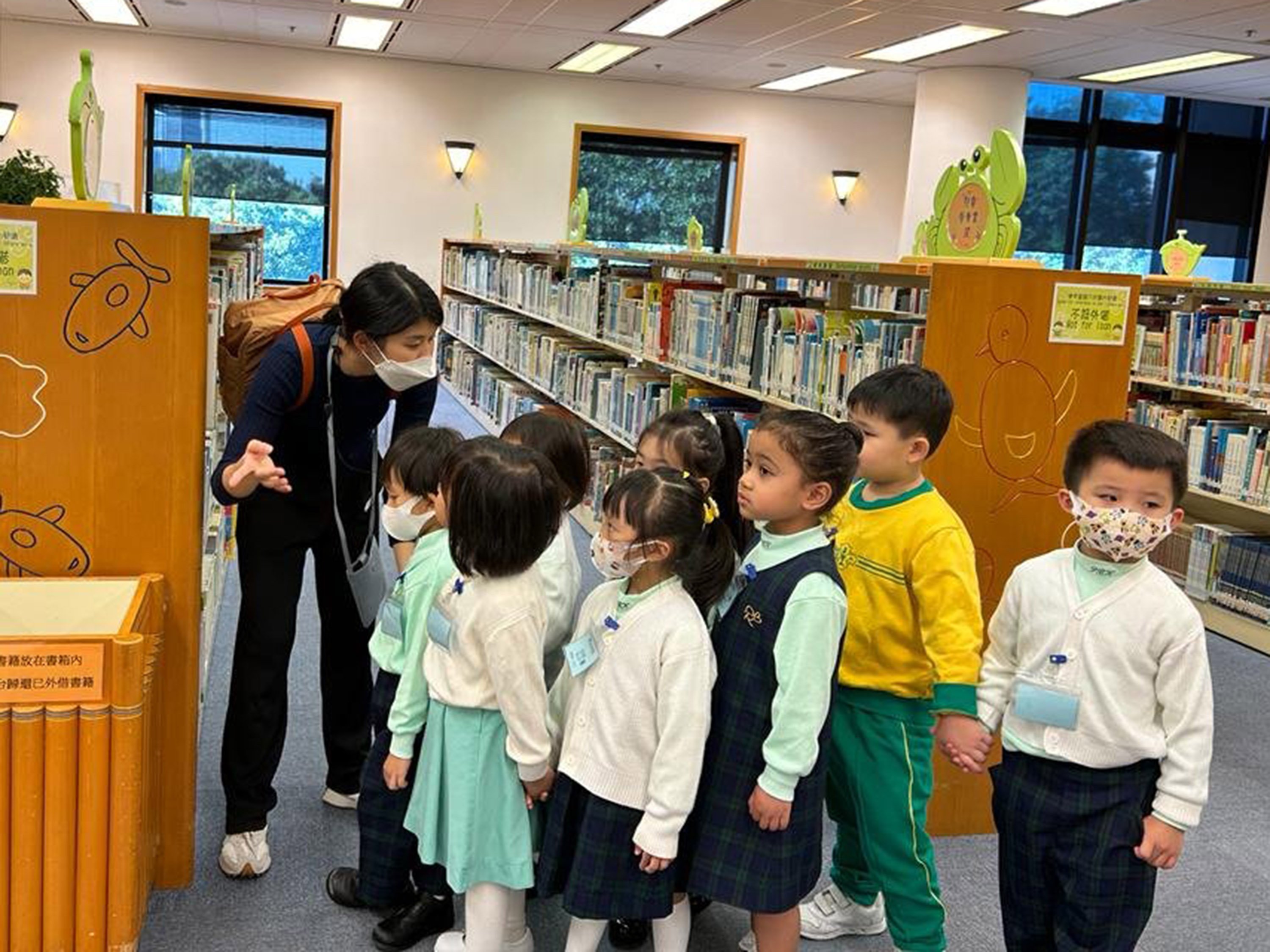 On 21 November 2023, the K2 Class children visited the Hong Kong Central Library on the school bus together with their teachers. On that day, the teachers took the children on a tour of the library, where they learned about the different facilities of the library, how to categorize books and the rules that should be observed in libraries. At the end of the day, the children chose their favourite books and borrowed the books at home by using the library card to build up a good habit of reading.