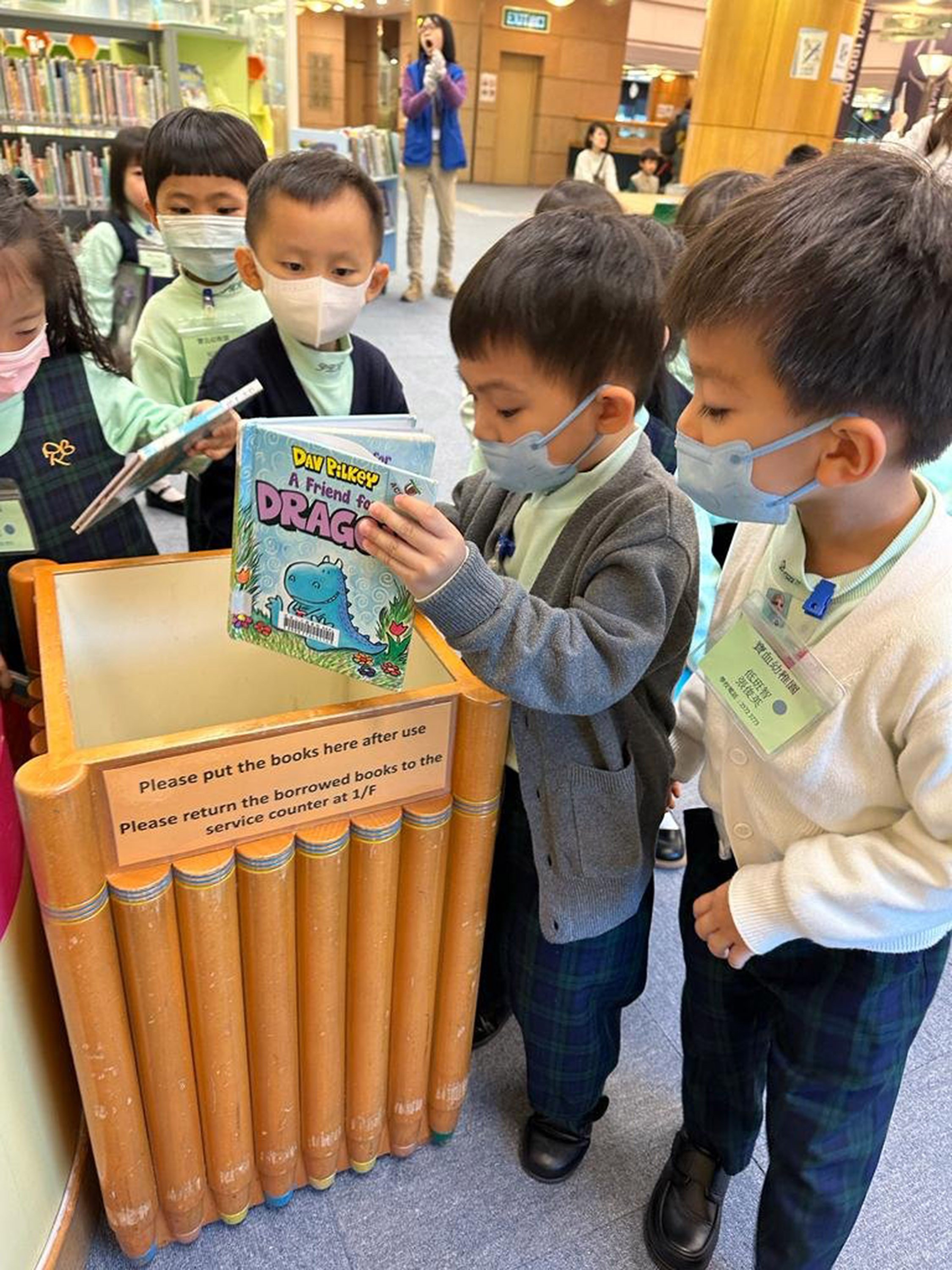 2023年11月21日,低班小朋友與老師一同乘坐校巴到香港中央圖書館參觀,當天老師帶領幼兒遊覽圖書館,認識圖書館不同的設施外,亦學習了圖書的分類方法以及圖書館應遵守的規則,最後,幼兒選擇了自己喜歡的圖書並使用圖書證借閱圖書回家,從酬建立良好的閱讀習慣。