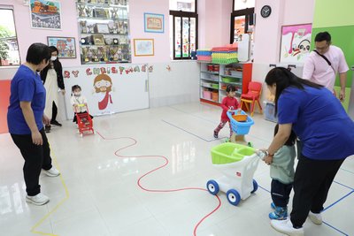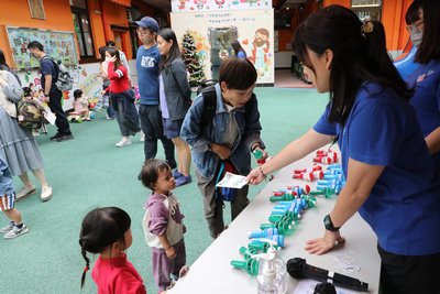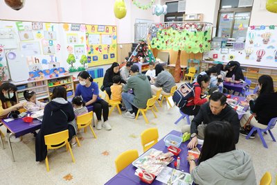 為了讓下年度入讀的幼兒及家長能更認識本園,學校於12月2日(星期六)舉行了「歡笑樂園」新生活動。活動以聖誕節為主題,當中設有精彩的活動,例如: 吹泡泡、跳彈床、繩網陣、聖誕吊飾創作、聖誕老人迷宮、運送小禮物、佈置聖誕樹、畫大筆畫及Peppa Pig聖誕皮影戲欣賞等等,此外幼兒更與老師一起模擬乘坐校車,體驗乘車上學的樂趣! 當日活動內容豐富,到處都充滿著聖誕氣氛,家長與幼兒愉快地渡過了美好的一天!