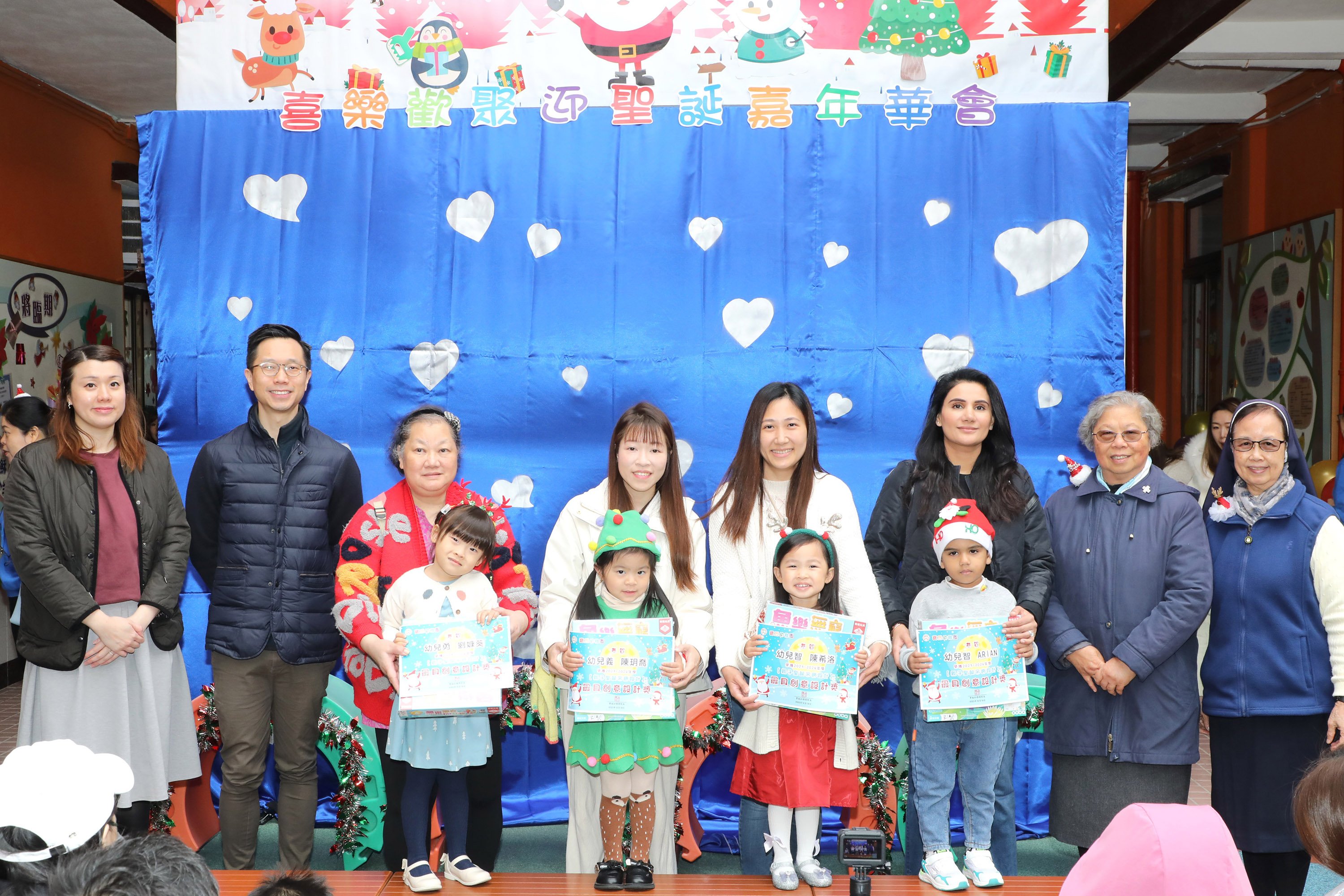 The "Parent-Child Creativity - Christmas Decoration Design" activity was jointly organized with the Parent-Teacher Association (PTA). After the judging by Sister KAM, Vice-Principal MA, the Director, all teachers and members of the PTA, awards and gifts for the six winners of the "Most Creative Designs" at each level of the award were presented at the "Joyful Gathering for Christmas" Carnival held on December 20, 2023 (Wednesday) by the Superintendent of the school, Sister KAM, the Chairperson of the PTA, Mr. PANG Chak-pong, and the Vice-Chairperson of the PTA, Ms. YAU Luen-wan. Gifts were presented to the six winners of the "Most Creative Design Award" at each level.
